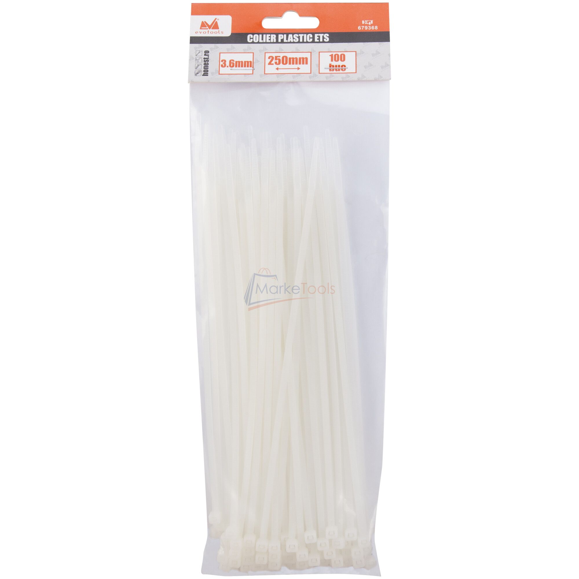 Set 100 buc coliere (soricei) plastic EvoTools 679368, 3.6x250 mm